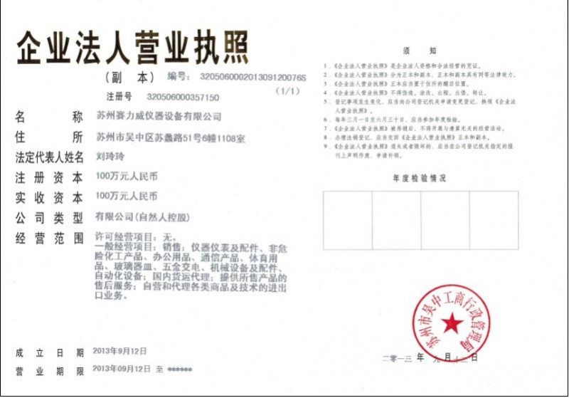 發(fā)證機(jī)構(gòu): | 蘇州吳中工商行政管理局 | 發(fā)證時(shí)間 : | 2013-09-12 |
